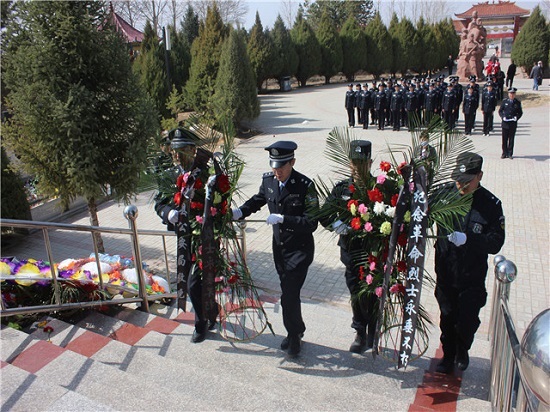 县公安局组织党员民警庄严宣誓,在烈士纪念碑前默哀开展清明节祭奠活动。
