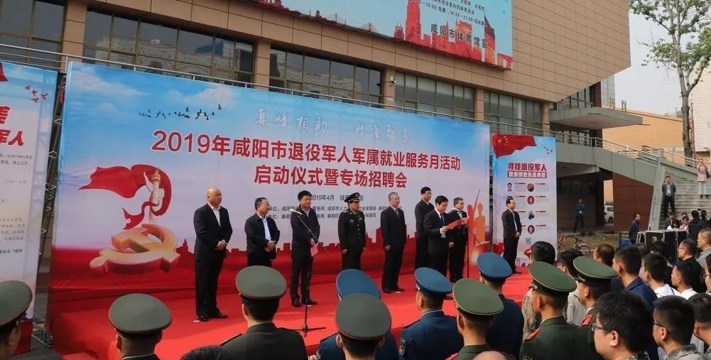 4月11日上午,由咸阳市退役军人事务局联合咸阳市人力资源和社会保障局、秦都区人民政府主办的“2019年咸阳市退役军人军属就业服务月活动启动仪式暨专场招聘会”在咸阳市体育馆举办,省退役军人事务厅副厅长屈小鹏,市委常委、副市长罗军,咸阳军分区副司令晏铎及市直相关部门负责人,部分参会企业代表,部分现役军人和退役军人代表共同参加了启动仪式。