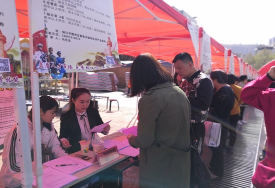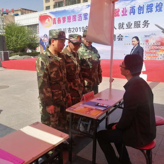 4月16日,铜川市退役军人事务局、铜川市人力资源和社会保障局联合王益区、耀州区举办“铜川市2019年退役军人就业服务专场招聘会”,同时在王益区华天广场、耀州区永安广场进行两场现场招聘。市退役军人事务局局长陈选民、副局长李永建以及铜川市就业局副局长辛治国及区级相关部门主要负责人、部分企业代表、部分现役军人家属和退役军人代表参加了活动启动仪式。