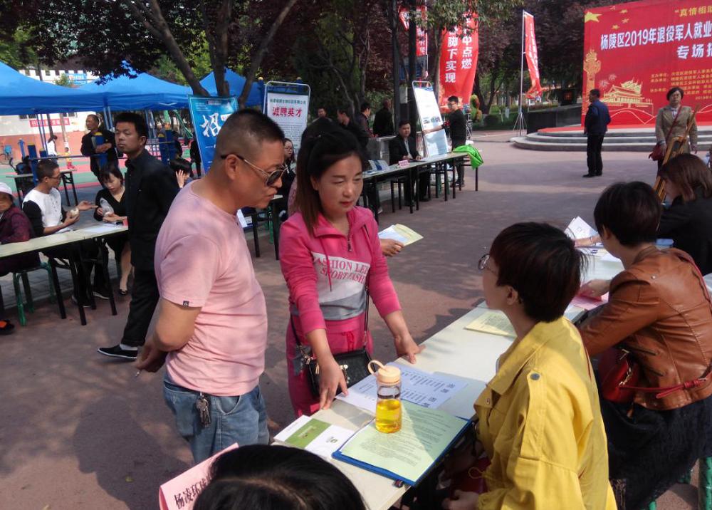 4月19日上午,以“真情相助,精准服务”为主题的2019年杨凌退役军人就业服务月暨民营企业招聘周活动在杨陵区后稷公园中心广场举行。