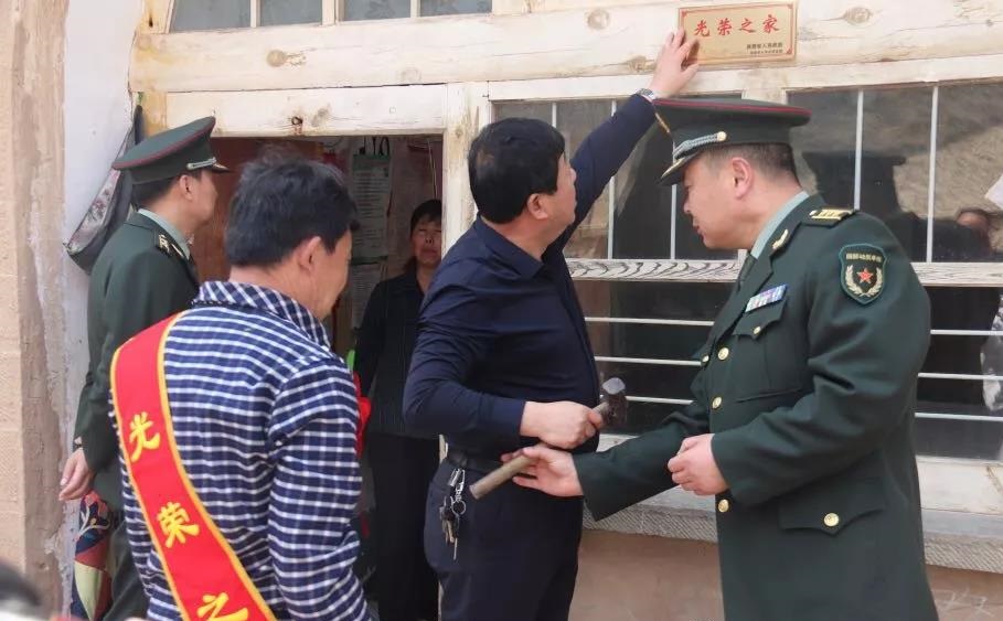为进一步加强党和政府对烈属、军属和退役军人的亲切关怀,近日,榆林市清涧县人武部、退役军人事务局和宽州镇负责人共同为宽州镇苗家沟村烈属、军属和退役军人家庭悬挂光荣牌。