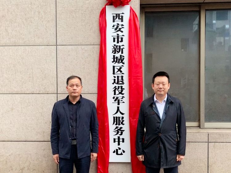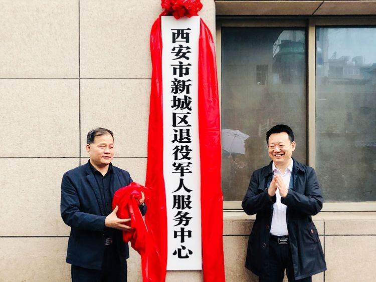 4月28日下午,新城区常务副区长齐海兵与区退役军人事务局副局长朱增理共同为“新城区退役军人服务中心”揭牌。