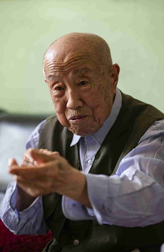 5月31日,张富清的战友刘聪普讲述359旅的辉煌和荣光。 记者 赵晨摄