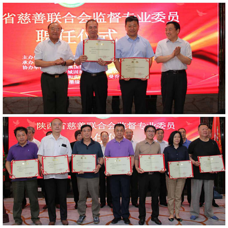 大会在热烈的气氛下宣读了中国慈善联合会等单位,国家人口和计划生育委员会原主任张维庆、最高人民检察院原常务副检察长张耕、陕西省人大原常委会副主任、原党组成员李金柱,陕西省政府参事,省人大原秘书长桂维民等纷纷发来庆祝陕西省慈善联合会成立两周年贺信,中慈联在贺词中说:两年来,陕西省慈善联合会取得显著成绩,很多做法起到了引领、示范作用,为陕西省乃至全国慈善事业做出了突出贡献。祝愿陕慈联以两周年为新起点,不忘初心、坚守使命,为我国慈善事业的健康、快速、可持续发展做出更大的贡献。随后,陕西省慈善联合会副会长兼秘书长李爱慧宣布了成立监督专业委员会的批复文件。陕西省陕西省原军区副司令员邱俊本、省人大社会建设委员会主任委员王建领、省慈善联合会会长薛引娥等领导为慈善监督专业委员会揭牌及颁发聘书。监督专业委员会孙俊做了表态发言,监督专业委员会将积极贯彻“治善与促善并重、合理与合情并守、监督与引导并举、自律与他律并促”的工作原则,使慈善监督成为我身慈善事业不断发展壮大的随行者、护航人。