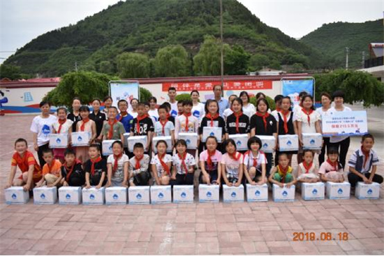 2019年6月18日,富德生命人寿铜川中支2019年 “陪伴小海豚”公益活动在铜川市金锁镇金锁关小学顺利举办。铜川中支负责人罗英、志愿者们及学校50余位师生参加此次爱心捐助活动。