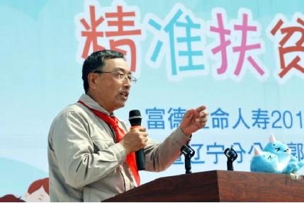 在阜新市彰武县东六家子九年制学校,身兼全国总工会副主席的郭明义把这面分队大旗交到了富德生命人寿辽宁分公司总经理董贵宁手上。郭明义说:“孩子是祖国的未来,富德生命人寿‘小海豚计划’公益活动为需要帮助的孩子们做了一件大好事!”