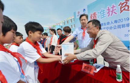 6月17日,富德生命人寿携手郭明义在东六家子九年制学校举办了“小海豚计划”捐赠仪式,为该校100名贫困学生送上了610万元保额的意外保险和100套小海豚温暖包,同时向20户特困家庭捐赠了2.5万元帮扶款。该校赠送了“大爱无疆美名扬,精准扶贫送温暖”锦旗。