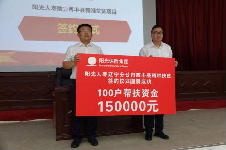 6月26日,“阳光人寿辽宁分公司助力西丰县精准扶贫”活动签约仪式在铁岭市西丰县举行,阳光人寿辽宁分公司将借助该计划为当地100户建档立卡贫困户提供保险捐赠、教育扶贫、农产品回购支持和就业扶贫等一系列扶贫项目,综合多元助力西丰县脱贫。辽宁省青少年发展基金会、阳光人寿辽宁分公司、西丰县政府、共青团西丰县委相关领导出席仪式。