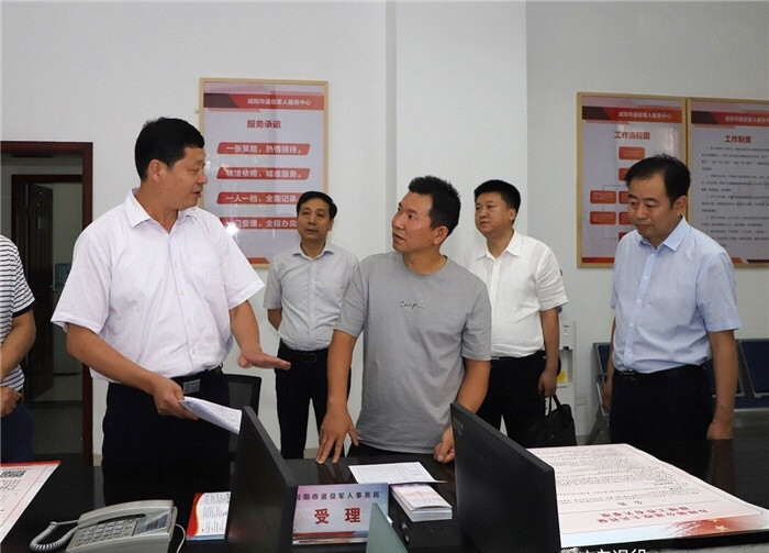 7月2日上午,咸阳市委常委、副市长罗军,市政府副秘书长白梓辰一行,在市退役军人事务局局长李忠祥、副局长李智敏陪同下,对市退役军人服务中心和兴平市退役军人服务中心部分退役军人社保接续工作进行检查调研。