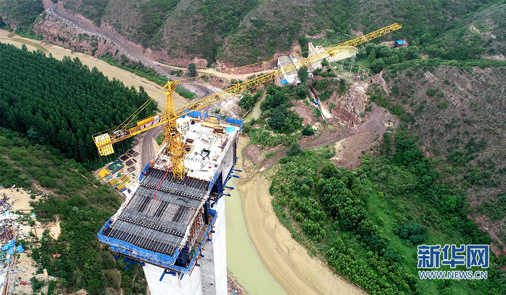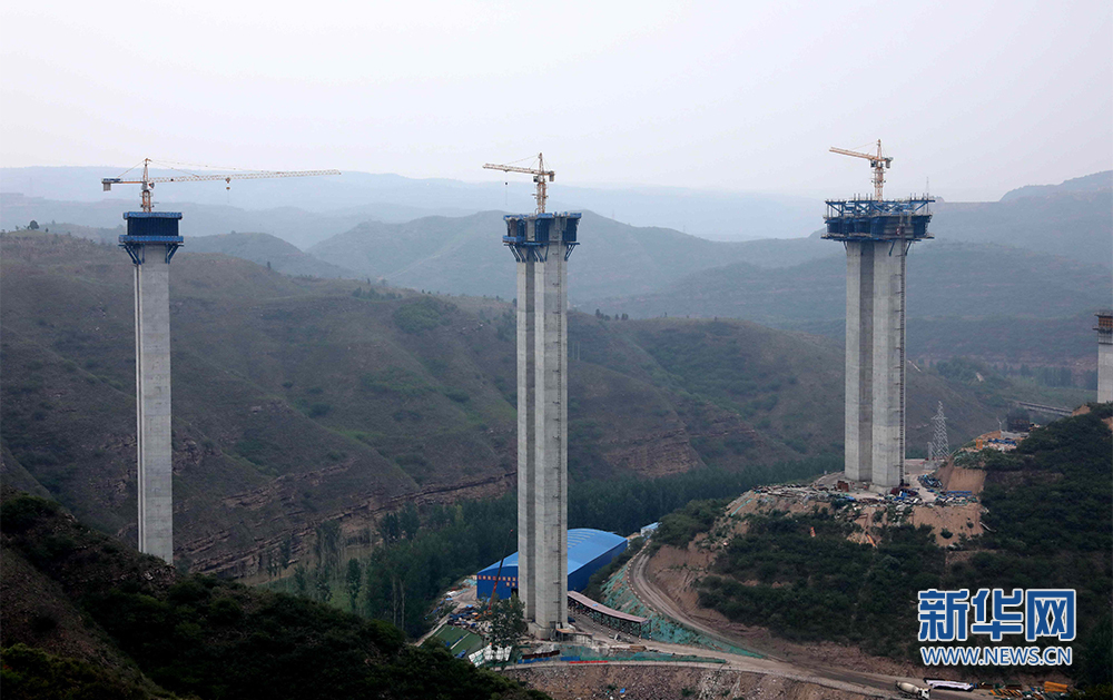 正在施工的洛河特大桥桥墩(无人机照片)。