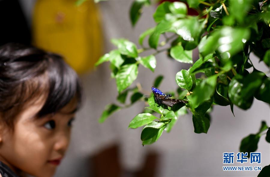 当日,在西安当代美术馆举行的昆虫展上,种类丰富的蝴蝶与广大参观者亲密接触。