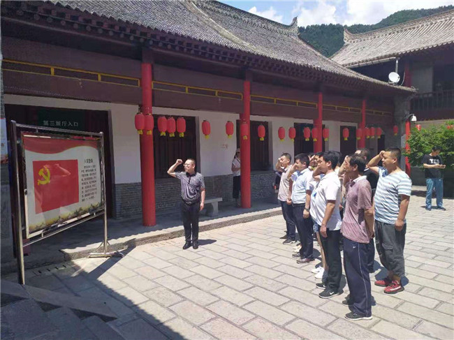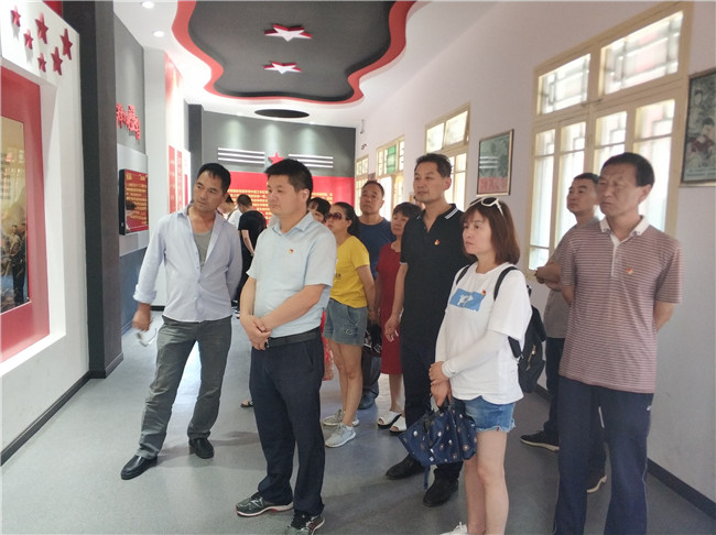 纪念馆展厅展出了大量历史资料照片,陈列了许多革命先烈们当年使用的武器和生活用品。 在李朝晖的带领下,所有党员干部列队站立,举起右拳,重温入党誓词,在党旗下追忆入党时的决心和理想,牢记共产党员人的初心和使命。
