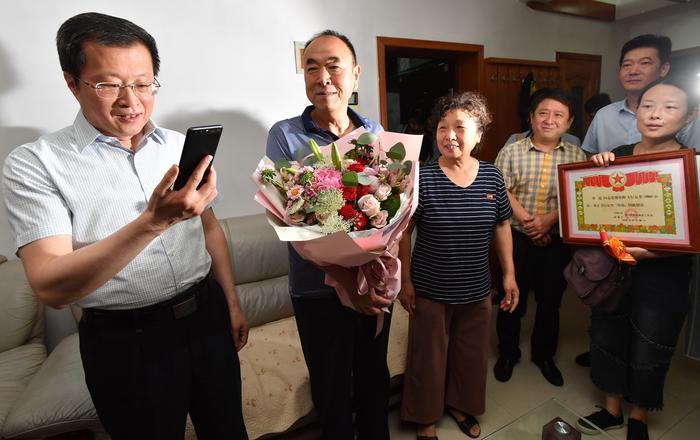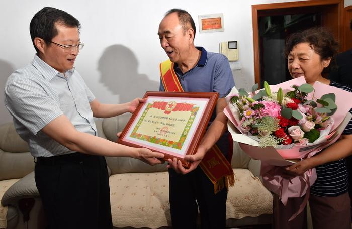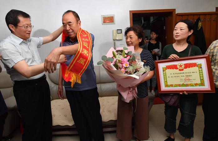 7月18日,碑林区政府工作人员向连续保障飞行安全3500小时,荣立二等功的现役军人刘超爸爸妈妈送去立功喜报和慰问金。当日,在西安市碑林区隆庆坊社区,碑林区政府会同退役军人事务局等相关部门,向在部队立功的碑林籍现役军人刘超爸爸妈妈送去立功喜报和慰问金,以此弘扬拥军优属光荣传统,推进军人荣誉体系建设,围绕“让军人成为全社会尊崇的职业”,努力营造尊崇军人、敬重军人,关心国防、热爱部队的浓厚氛围。(记者 袁景智)