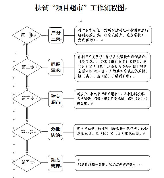 建立超市台账。建立户、村扶贫“项目超市”台账,户扶贫“项目超市”明确贫困户基本信息、项目类别、建设内容、预期收入、实施年度、责任主体等内容,村扶贫“项目超市”明确项目名称、建设内容、资金来源、实施年度等内容。