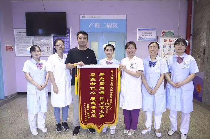 日前,产妇的爱人许先生难抑感谢之情,将一面印有“筹急需血源,行天使大爱,显医者仁心,展德善风采”的红色锦旗送到了医护人员和芮欣手中。
