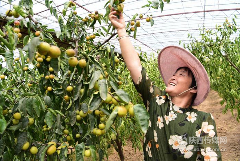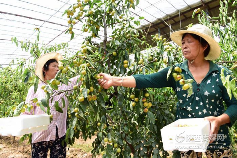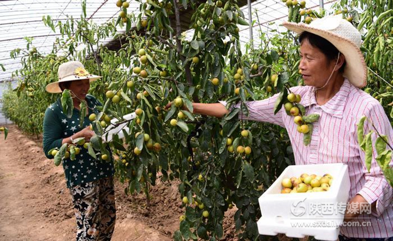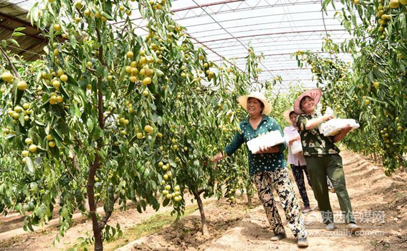 7月26日,高陵区创鑫种植农民专业合作社务工者采摘成熟的羊奶富硒冬枣。连日来,位于西安市高陵区通远镇仁村四组创鑫种植农民专业合作社10大棚30亩羊奶富硒冬枣进入开园期。面对丰产的6000公斤羊奶富硒冬枣,枣农专业户徐建军愁容满面,一点都高兴不起来,急寻客商上门看货,洽谈采购订货,同时欢迎广大市民前来购买,体验采摘的乐趣。记者 袁景智摄