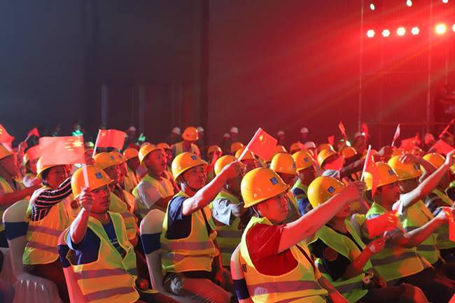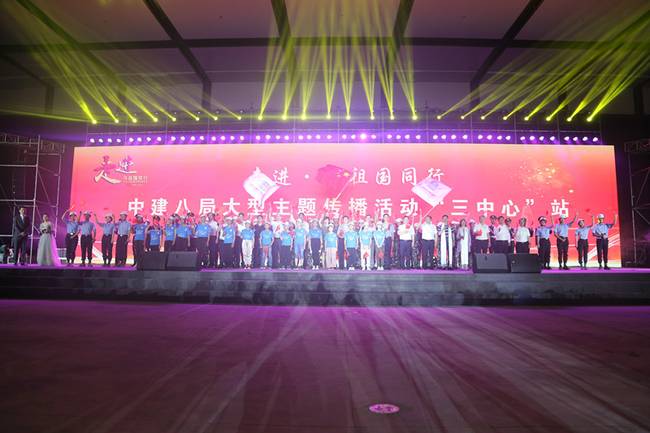 7月30日,中建八局在西安丝路国际会议中心项目建设工地举办“走进·与祖国同行”(西安“三中心”站)——庆祝新中国成立70周年主题活动。千余名奋战在西安“三中心”项目的建设者们欢聚一堂,通过歌曲、诗朗诵等形式,向伟大祖国献上最真挚的祝福。