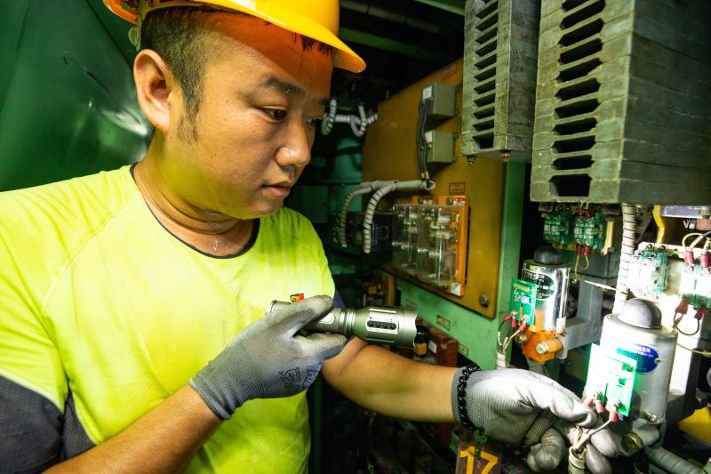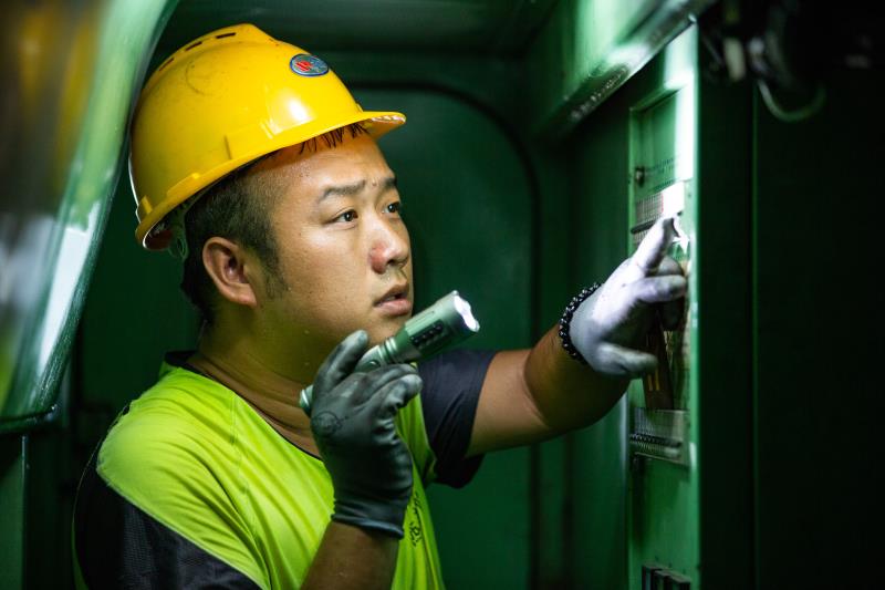“小陈,找到了!这段儿电线的绝缘状态不良!得抓紧处理!”于威一边干一边指挥,和小陈一起按照工艺流程对电线路绝缘性进行增强。很快,问题处理完毕,经过使用欧姆表检测,绝缘正常达标!35分钟争分夺秒,不但得战斗,还得“蒸桑拿”,于威已经变成了“水人”,虽然从闷罐子机械间里出来了,但汗水仍然顺着额头、脸颊、脖子、脊背流成了“小溪”,只顾用搭在脖子上已经湿透了的毛巾不停地擦,连把毛巾拧干的力气也没了。