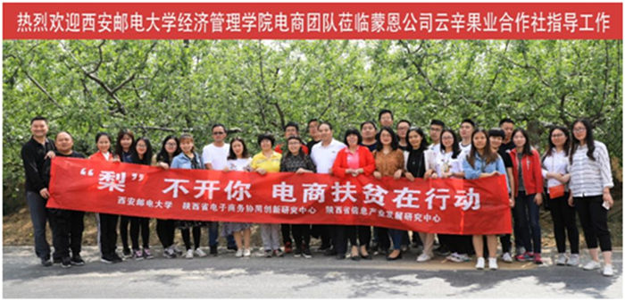 传承田野调查传统,实施电商精准帮扶。团队传承了社会学家的调查方法,深入田间地头,对农村、农业、农民做全面了解。团队提出,只有脚踏真实的乡村土地,深入草根阶层,才能获得大量鲜活的经验和数据,获得丰富的研究素材和学术灵感。多年来,团队成员奔波于陕西50余个区、县的田间地头,对基层政府、农民及电商从业者进行精准帮扶。在临潼,马额镇苹果因为不够甜而出现滞销问题,张鸿教授经过三天的深入调查,提出了切实可行的解决方案,提高了果农收入。在宜川,平壶口酥梨严重滞销,团队成员带领MBA学员30多人奔赴宜川县田间地头,提出了从线上线下渠道建设、品牌塑造、营销策略等方面的对策建议,解决了滞销问题。帮助宜君县编制了《电子商务发展规划》等政策文件,并获得省委网信办批复实施,指导宜君县建立农村电子商务综合服务体系以及农产品溯源系统,帮助完成“唐八件”、“锦照金”等品牌注册,有效提升当地农产品的影响力,产生了良好的经济效益。