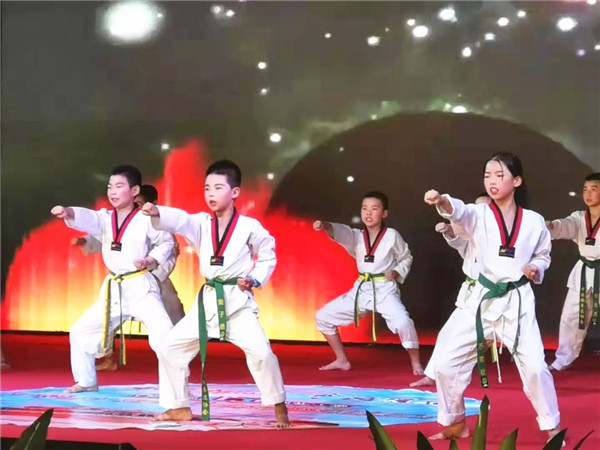 “我和我的祖国一刻也不能分割,无论我走到哪里都留下一首赞歌……”演出在清脆嘹亮的男声独唱《我和我的祖国》中拉开了序幕。随后,辖区少年宫学校的孩子们带来跆拳道《少年中国》、相声《中国梦》、群舞《那时花开》等精彩节目,不断将现场气氛推向高潮,赢得阵阵掌声。