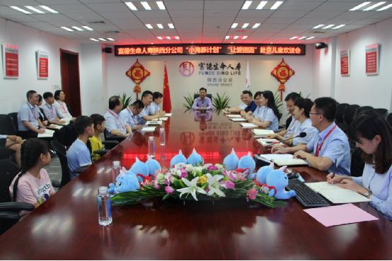 7月31日下午,分公司组织4名赴京儿童参观陕西分公司职场,了解工作环境,在分公司视频会议室召开欢送会议,分公司总经理张瑞带领总经理室成员及各部门经理、办公室全体员工、各部门品宣员参加了欢送会。会上,分公司办公室主任席清雅对“小海豚计划”公益活动发展历程及2019年“陪伴是爱,让爱团圆”小海豚计划活动主旨进行了介绍,对北京出行期间的安全注意事项进行了温馨提示。张瑞总为孩子们发放公司精心准备的旅行箱、书包、衣物、鞋帽、药品及防晒等用品,并亲切的勉励孩子们,一是要看到父母的不容易,向父母讲讲自己的学习情况,让父母放心。二是回来后要努力学习,用知识改变命运,做一名有礼貌、有理想、有道德的小朋友。三是此次活动对我们的员工也是一种教育,希望全体员工心中有爱,做一个善良、感恩、温暖的人。最后张瑞祝小朋友们北京之行一路顺风,并留下和父母团聚的难忘回忆。