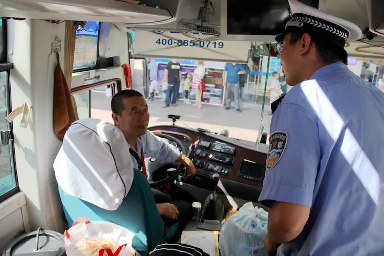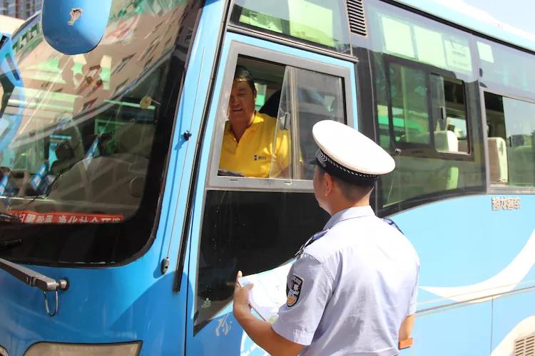 最后,大队领导在客运车辆安检点对客运车辆的安检记录进行了查看,要求车辆安检员要切实负起责任,尽职尽责,杜绝带病车辆上路。经二路中队民警向驾驶员详细讲解了交通安全展板事故警示案例,向乘客群众发放了“车让人•人守规”交通安全宣传彩页,使驾驶员和乘车群众把交通安全时刻牢记心头,全力做好夏季客运车辆交通事故预防工作,努力构建“车让人•人守规”的和谐交通安全出行环境。
