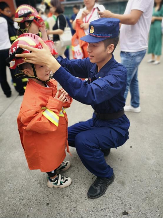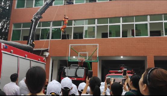 接下来,消防员叔叔还陆续表演了液压钳夹乒乓球、高层救火演习,每一个表演都让孩子们惊奇万分,连声喝彩。