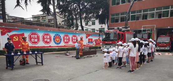 最后,消防叔叔们带领孩子们上消防车参观,亲自体验驾驶室的感觉,并让孩子们换上消防服、防火服,亲自扮演一回“小小消防员”,我是小小消防员,安全意识从我做起。