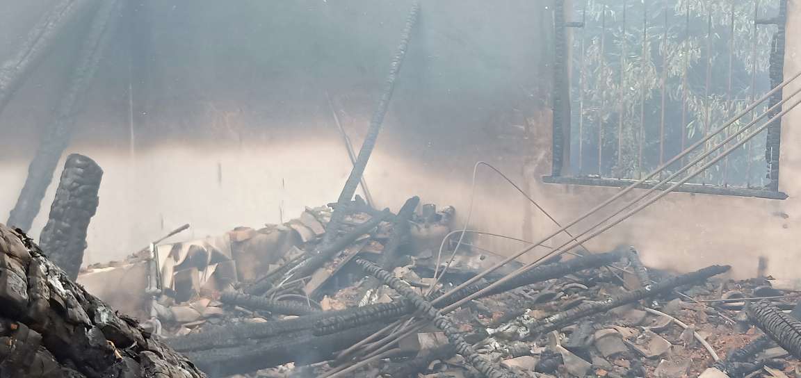 由于出警地点位于山区,水泥路修的较窄,弯道多,且道路两旁有堆放的杂物,道路极其不好走,只有城市主战消防车勉强抵达火场,25吨水罐消防车由于上不来,只能停在离火场约7公里处。到场后发现现场为二层楼房起火,起火部位位于二楼,内部堆放有老旧家具,以及杂物,火势已经将房屋顶部房梁烧毁,从外部看有较大火势,指挥员立即下达指令出水灭火,在长达20分钟的扑救后,向楼梯进攻,尝试到二楼后再出水,但是由于楼梯二楼的出口位于火场内部,已被坍塌下来的房梁掩埋,导致楼梯无法使用。指挥员观察地形后,下令:一人保护,其余人从南侧居民楼二楼翻到火场外围。战斗员及指挥员抵达后,立即出水,对剩余明火进行扑打。