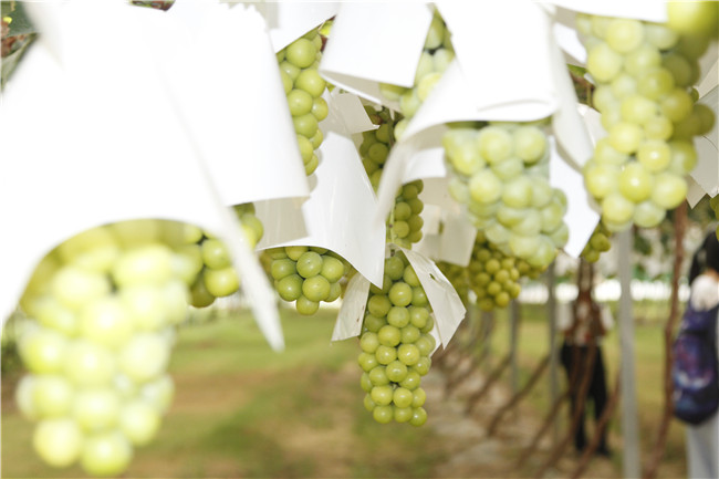 三月踏青、四月闻香、五月尝鲜、六月采摘、七夕浪漫、八月激情、九月酿酒、十月收获、一冬回味……通过现代农业科技运用,渭南葡萄产业园的葡萄“保鲜期”足足达到了9个月。尤其是夏季之时,万米葡萄长廊藤蔓环绕,水帘长流,喷雾弥漫……这里宛如葡萄的仙境。目前,园区按照“现代农业导向、特色小镇融合、田园风光衬托、生态景观点缀、休闲旅游融合”的思路,已建成“四纵三横”骨架路网、智能温室、智控中心、3000亩避雨设施栽培示范园、生态观光大棚、万米葡萄长廊、三贤酒庄、欧式景观区等。园区先后获评国家葡萄产业技术体系综合示范基地、全国休闲农业与乡村旅游示范点、国家4A级旅游景区。(记者 程靖峰 摄影 唐兰可)