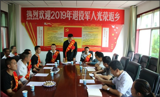 9月5日,延安市黄龙县为载誉归来的退役军人举行欢迎仪式,同时召开黄龙县19年退役军人座谈会。欢迎仪式上,工作人员为每一名退役军人都披戴绶带和大红花,让退役军人第一时间感受到了家的温暖。退役军人代表张笑天为家乡建设发展贡献力量作出发言。