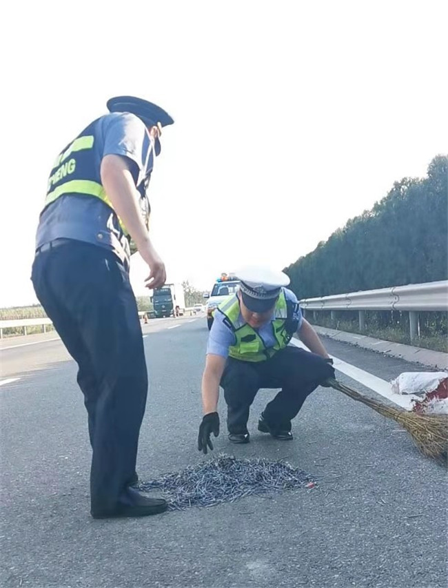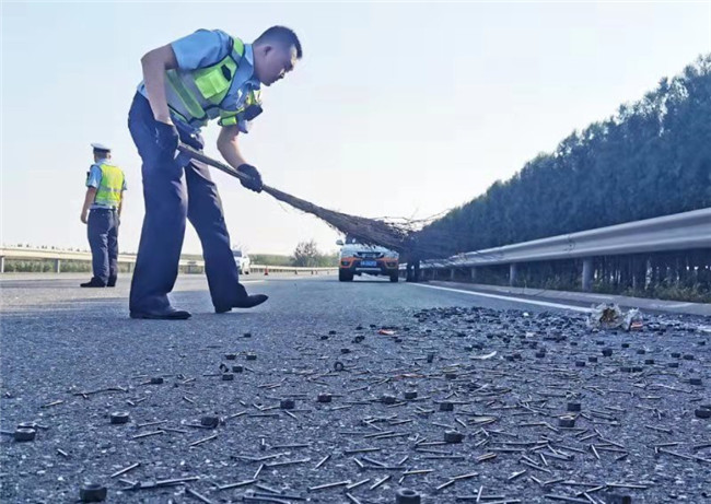 为了确保车辆通行安全,高速交警发扬“人在路上,心在路上,服务在路上”的信念,细心清扫,保证在京昆高速辖区内决不漏一颗钉子,不留一丝隐患。在清扫后,民警又将高速路面扫描一遍,发现没有隐患后徒手将散落的数百公斤水泥钉重新打包转运,最后确认路面干净后才撤离现场。(记者 唐兰可 通讯员 李沛华 林文娟)