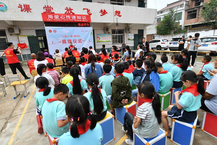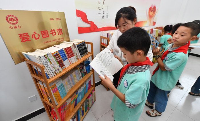 9月10日,东阳化小学老师和同学在新捐助的小葵花爱心图书室享受阅读的乐趣。当日,在西安市周至县四屯镇东阳化小学,共青团西安市委、西安市心连心志愿者协会等单位与爱心企业开展“小葵花爱心图书室”捐助活动,首批2000余册优秀图书已捐助给周至县四屯镇东阳化小学爱心图书室,以丰富和更新了同学们的课外读物,使学生足不出校,尽享阅读的乐趣。