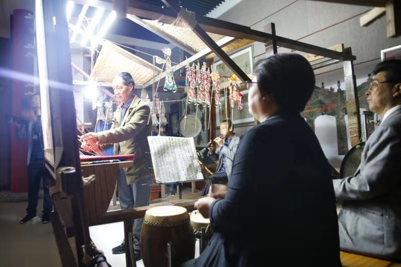 9月20日,人民中国杂志社社长陈文戈、日本专家田中光辅一行来扶风采访文化旅游,县委宣传部精心组织策划,县文旅局、县林业局、法门文化景区管委会、周原博物院、县文联等部门单位积极配合,让采访团充分采访到了具有扶风特色的素材。10点30分,采访团一行一抵达扶风关中风情园,顾不得观赏风情园旖旎秀丽的风光,就投身风情园民俗博物馆采访扶风碗碗腔皮影戏。采访团首先观看了李海宁团队表演的明朝朱元璋洪武年间扶风特色碗碗腔皮影戏《柳河川》。然后,对表演的几位老艺人进行了采访。据了解,关中皮影分东路、西路两种,扶风皮影属西路风格,以碗碗腔为主。扶风皮影戏班班社众多,源远流长,上世纪四五十年代,扶风县境内有10多个皮影班,名气大的有“满儿娃”、“顺劲娃”、“韩家娃”、“省儿娃”、“本儿娃”等。现仅存留的扶风碗碗腔皮影戏班是经席宗虎组织恢复的满儿娃皮影班,一般由七人组成,一人挑线,一人配线,一人主唱(生、丑、净、旦全演)其余人拉弦、敲鼓,执各种乐器,一专多能,身兼数职。扶风县碗碗腔皮影戏的传承人李海宁说:“扶风的碗碗腔皮影班,可以唱50多出大戏,剧目有:《全家福》、《告御状》、《泗水关》等,碗碗腔皮影戏在演唱时,分三个调式,大调、二调、三调,主要唱腔曲调分为尖板、大板、二板、二六板、飞板、滚板。板式虽不多,由于调式不同,灵活多变,喜、怒、哀、乐表达得淋漓尽致,唱起来婉转悠扬,非常动听。”