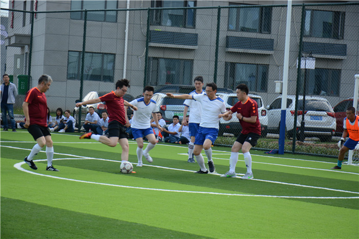 首战热身,金信实业以5:2高分领先,接下来的几场比赛中,场上队员渐入佳境,带球过人,跑位传球,临门远射,配合默契,场上角逐激烈,场外助威、呐喊声此起彼伏。