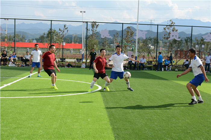 丹江迎远客,商山启宏图。9月27日,随着一声穿透云霄的哨音响起,陕西商洛发电有限公司“庆祝新中国成立70周年足球邀请赛”在刚刚落成的足球场拉开帷幕。集团总部新兴产业联队、航空产业、金信实业以及商洛发电4支球队的领队、教练、队员、裁判、啦啦队等80余人列队走进绿茵场,以“强身健体 振兴中华”的心声奏响了“运动强健体魄 拼搏成就梦想”的主题。公司副总经理、工会筹备组组长张世明主持开幕式。公司执行董事、总经理张正峰出席开幕式并致欢迎辞。