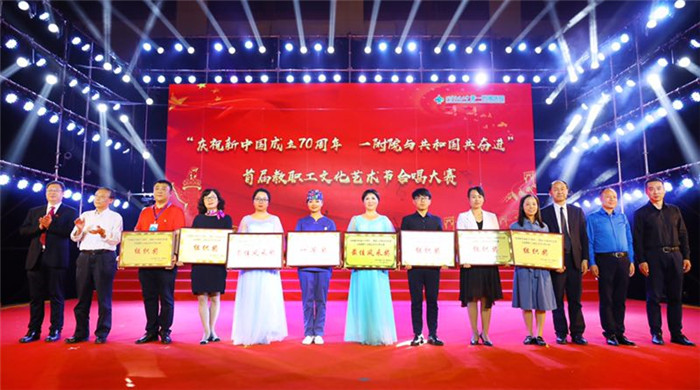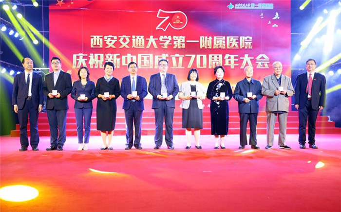 随后,医院党委书记马辛格、院长施秉银分别为郑国强教授、薛武军教授、田普训教授颁发了中共中央、国务院、中央军委“庆祝中华人民共和国成立70周年”纪念章,为尹泉潮教授、南勋义教授、苟文丽教授、李芬教授、车文芳教授、袁祖贻教授、郑鹏生教授、武淑芳教授、吴岳研究员颁发了一附院“庆祝中华人民共和国成立70周年”纪念牌,大家共同见证了专家教授们曾经为热爱的国家和心爱的事业付出的努力和辛勤的汗水。庆祝大会之后,医院首届教职工文化艺术节歌咏比赛正式开始,为了庆祝中华人民共和国成立70周年,激发全院职工的爱国热情,充分体现“一附院与共和国共奋进的家国情怀”,“全面展示我与一附院共成长的爱院风貌”,经过两个月的精心筹备,全院55个部门工会组成了15支合唱队,参与演员达1500余人,大家在紧张忙碌的工作之余,积极排练,精心准备,最终,经过专家评选和网络投票两个环节的激烈角逐,共有8支合唱团进入了本次歌咏比赛的总决赛。