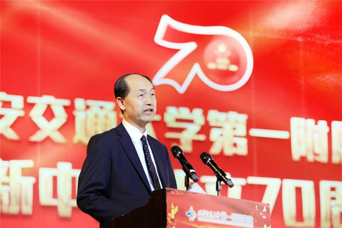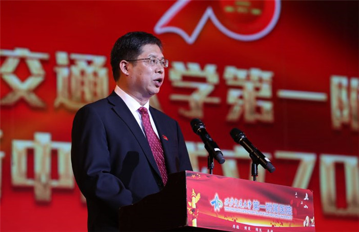 接着,医院党委书记马辛格作了题为“新时代新征程、不忘初心与国共奋进,新目标新发展、牢记使命为民佑健康”的主题发言,他首先回顾了新中国成立70年以来的峥嵘岁月,他谈到,新中国成立70年以来,一附院始终与共和国共成长,始终与中华民族的兴衰紧密相连,一附院的前世今生就是祖国兴衰荣辱的缩影。他说到,在党和国家第一个百年目标即将实现之际,我们要努力完成国家区域医学中心建设的任务;在祖国乘胜而上向第二个一百年目标奋进时,继续向建设中国特色世界一流名院的宏伟目标奋进。希望一附院在未来的发展道路上,深入学习贯彻习近平新时代中国特色社会主义思想,以“健康中国”为己任,以“功成不必在我,功成必定有我”的执着和担当,一茬接着一茬干、一棒接着一棒传,发扬钉钉子精神,一张蓝图绘到底,向实现“两个一百年”奋斗目标和实现民族伟大复兴的中国梦交出一份新时代的无悔答卷。