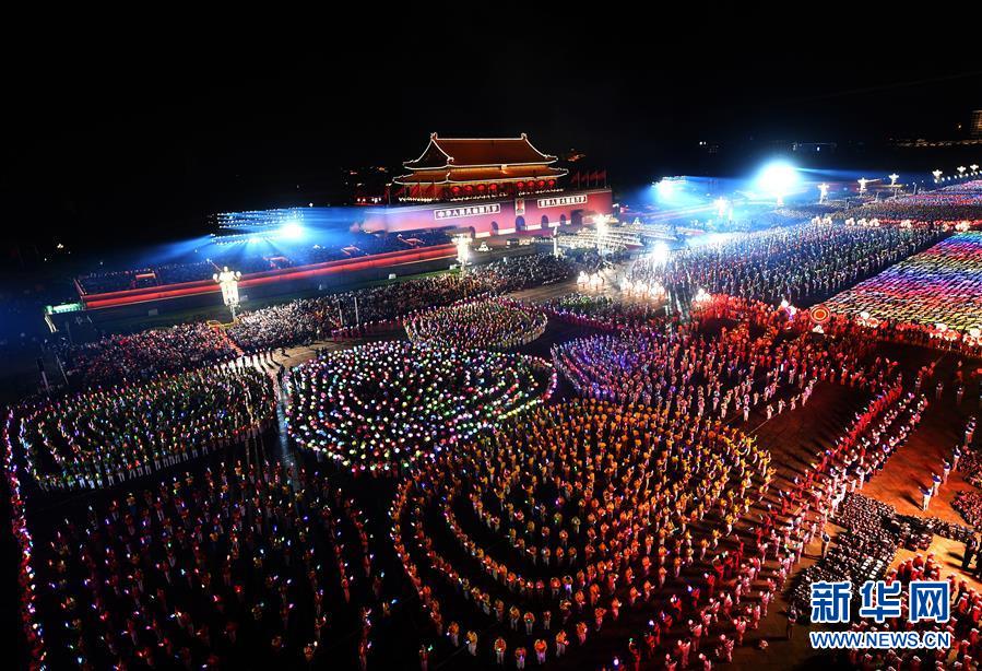 10月1日晚,庆祝中华人民共和国成立70周年联欢活动在北京天安门广场举行。这是联欢活动现场。 新华社记者 李响 摄