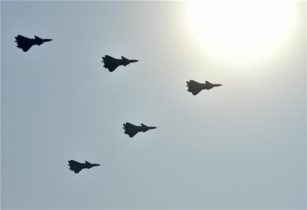 10月1日上午,庆祝中华人民共和国成立70周年大会在北京天安门广场隆重举行。这是受阅的歼击机梯队。 新华社记者 黄宗治 摄