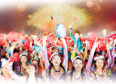 10月1日晚,庆祝中华人民共和国成立70周年联欢活动在北京天安门广场举行。这是活动现场。新华社记者 刘 彬摄