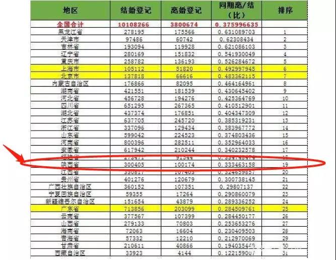 数据显示:陕西省结婚率逐年降低