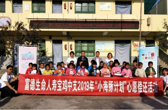 截止2019年10月,富德生命人寿宝鸡中支向陈仓区县功镇第三小学孩子们捐赠1525万保额的保险保障、价值5万余元的温暖礼包、价值5500元的图书及学习用品,为孩子们搭建“爱心书屋”一座。今后,富德生命人寿宝鸡中支将持续推动“小海豚计划”及“星星点灯 照亮生命”爱心助学公益项目,去帮助更多的贫困孩子完成学业,积极践行企业社会责任。