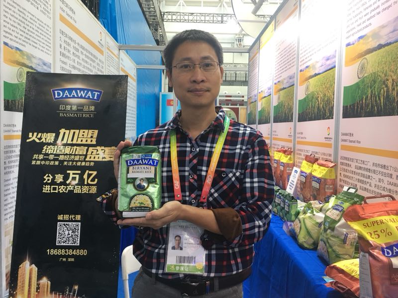 “一定要把我拍帅气一点!”在D馆的上合组织展区,甘勇热情招呼记者,并向记者仔细介绍了自己带来的产品——印度香米。