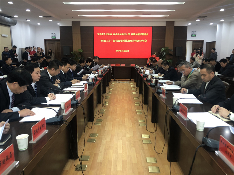 10月23日上午,宝鸡市人民政府、西北农林科技大学、杨凌示范区管委会“两地三方”深化农业科技战略合作2019年会在西北农林科技大学国际交流中心召开,会议就深化两地三方农业科技合作,加快区域现代农业发展进行了深入研究部署。