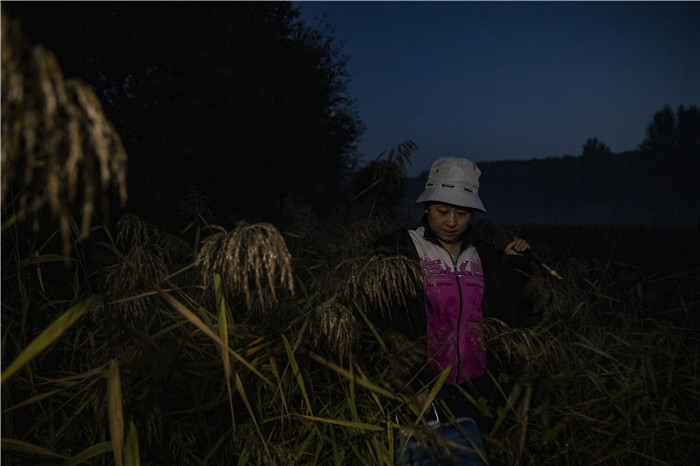 9月21日凌晨5点多,在通往神木站植物黎明叶片水势测定试验田的小路上,中科院生态环境研究中心的硕士研究生安金霞的衣服被露水打湿。陕西日报记者 赵晨摄