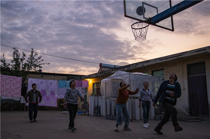 9月20日,几名学生利用饭后休息时间在院子里打篮球,这是他们为数不多的娱乐项目。陕西日报记者 赵晨摄