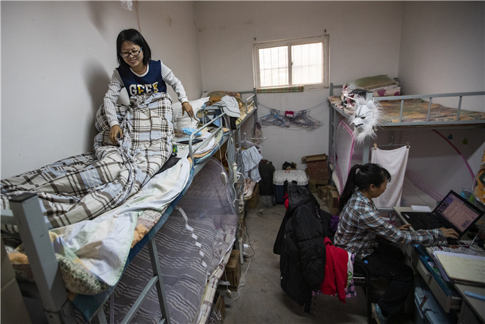 9月19日,已经完成试验的博士研究生赵影(左)在收拾被褥,准备离开神木站。就是在这种简陋的条件下,水保所神木站近年来累计接待来站工作和考察的国内外研究人员和专家达800多人次。陕西日报记者 赵晨摄