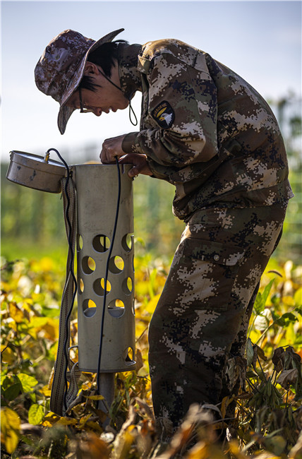 9月18日,在神木站的试验田里,硕士研究生袁鸿猷正在利用中子仪测量土壤水分。陕西日报记者 赵晨摄