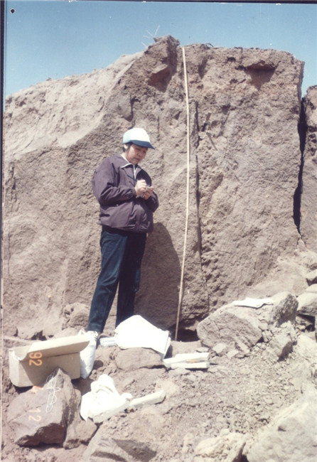 1992年,唐克丽在黄土高原考察远古土壤剖面。
